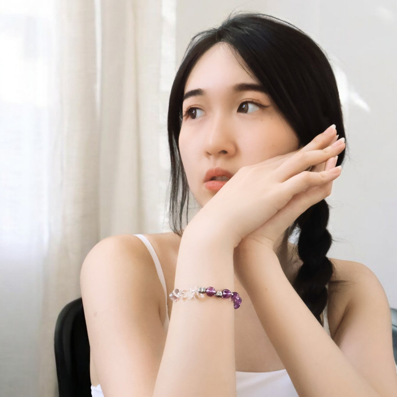 Made with natural Purple Amethyst, sparkling White Zircon, and strong Titanium Steel, this bracelet brings calm, focus, and lasting beauty to your everyday life.