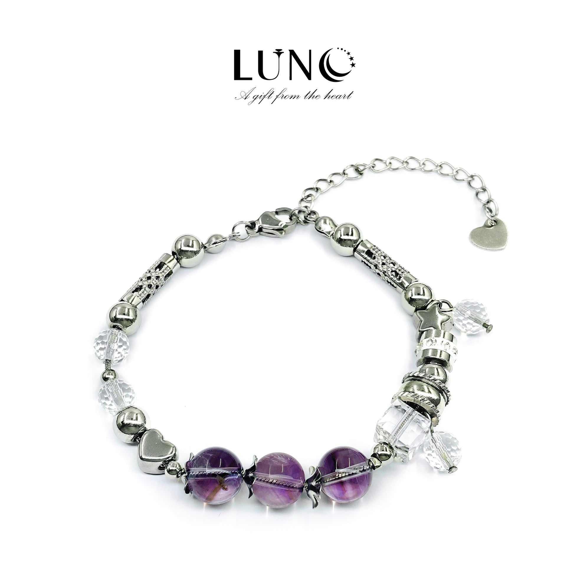 Made with natural Purple Amethyst, sparkling White Zircon, and strong Titanium Steel, this bracelet brings calm, focus, and lasting beauty to your everyday life.
