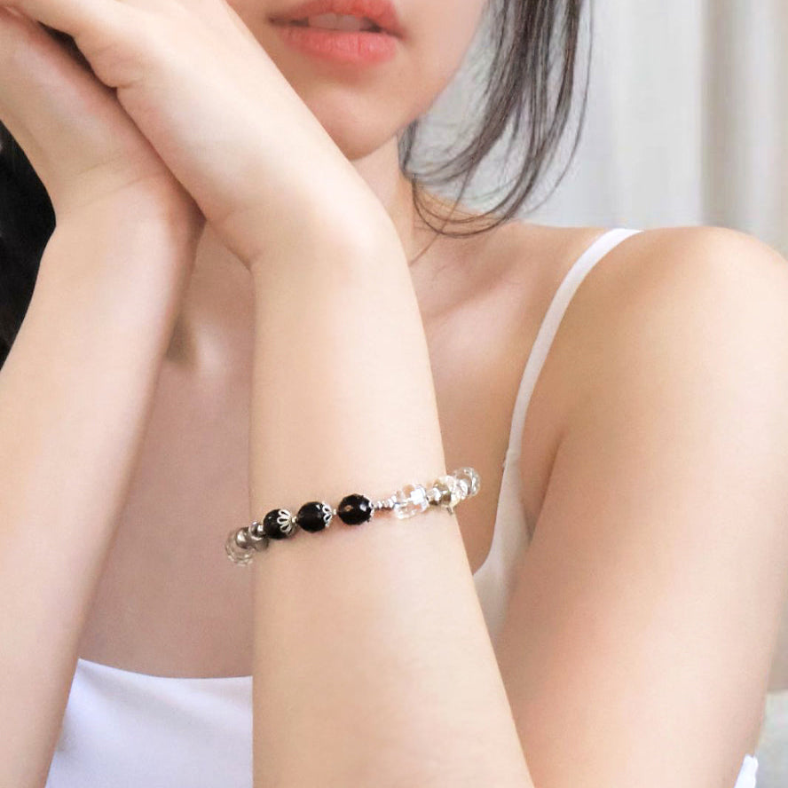 Made with natural Smoky Quartz, white zircon, and durable Titanium Steel, this bracelet grounds your energy, relieves stress, and brings clarity through calm.